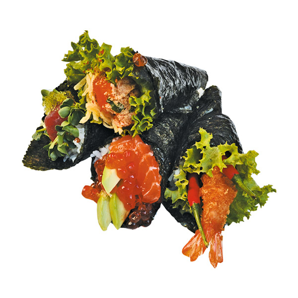 Seetang und Teriyaki soße, Lachs, Thunfisch, Butterfisch, Rogen